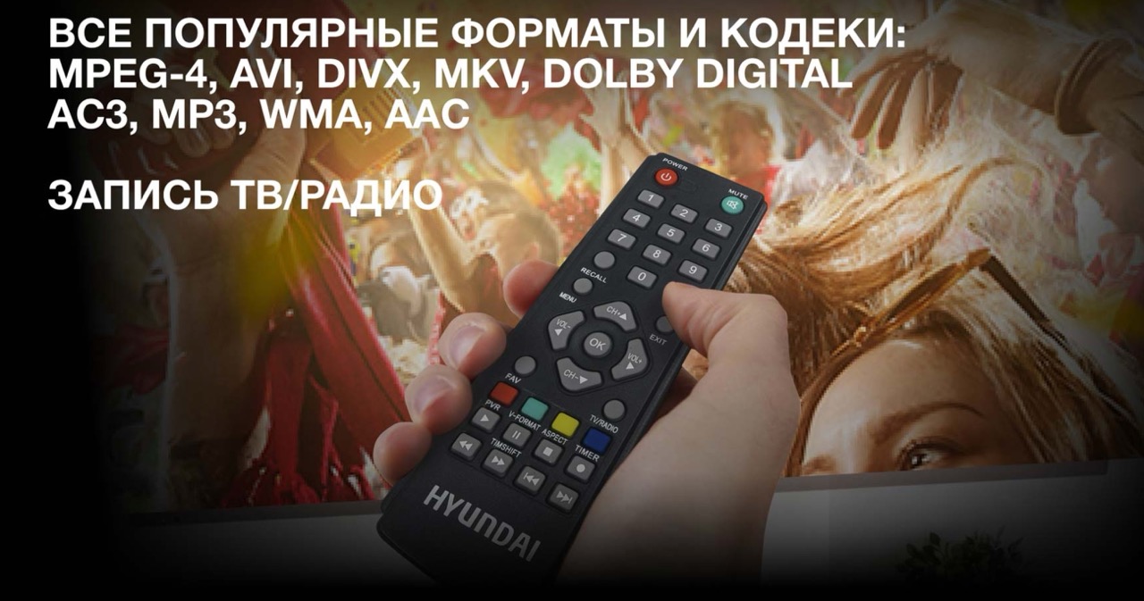 Ресивер Hyundai H-DVB520 – современное устройство, которое разработано, чтобы поддерживать телевещание в актуальных стандартах. Круглые черные кнопки визуально поддерживаются округлостью корпуса. Передняя панель оснащена цифровым экраном. Имеющиеся разъемы – вход для антенны, два USB, HDMI, композитный. Принимаемые телевизионные трансляции, скачиваемые мультимедиа можно записывать на внешний накопитель, подключаемый к USB-порту. Внутри корпуса находится микропроцессор GX6701 с видеотюнером, принимающим телеканалы в частотных диапазонах VHF и UHF. Телевидение высокой четкости понравится требовательным пользователям. Смотреть видеоконтент приятно и комфортно.