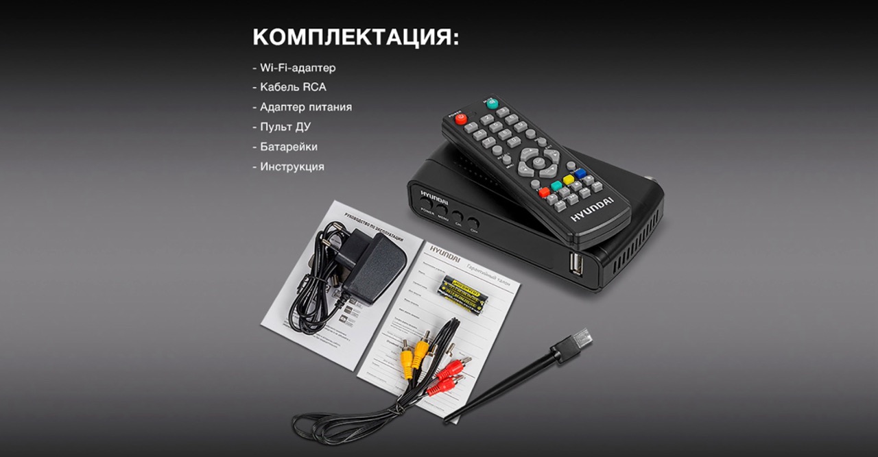 Характеристики Ресивер Hyundai H-DVB520 wi-fi адаптер черный