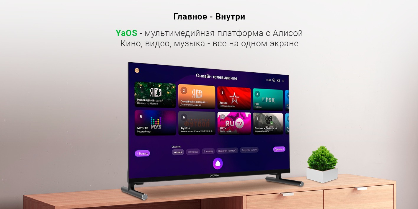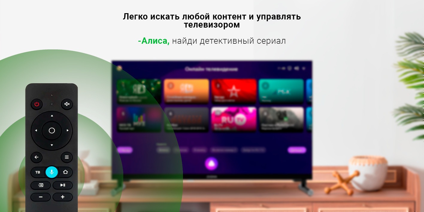 Голосовое управление позволяет управлять голосом функциями вашего ТВ. У брендовых телевизоров эта опция реализована на основе собственных фирменных технологий. У бюджетных телевизоров часто используется платформа Яндекс (или комбинация Андроид + Яндекс ТВ) - в таком случае голосовое управление реализовано на основе голосового помощника Алиса.