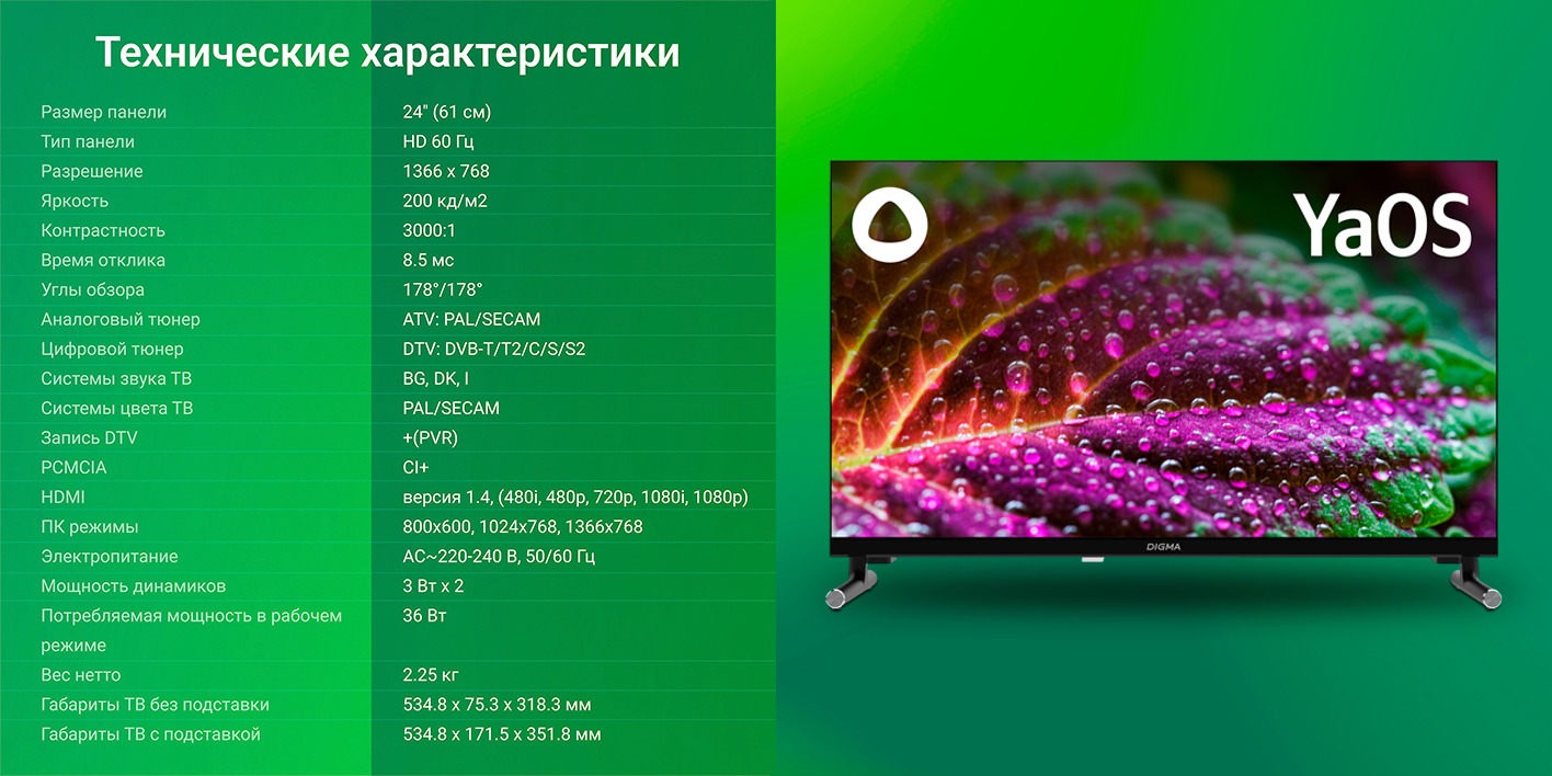 Телевизор Smart TV Digma DM-LED24SBB32 24" 1366 x 768 LED