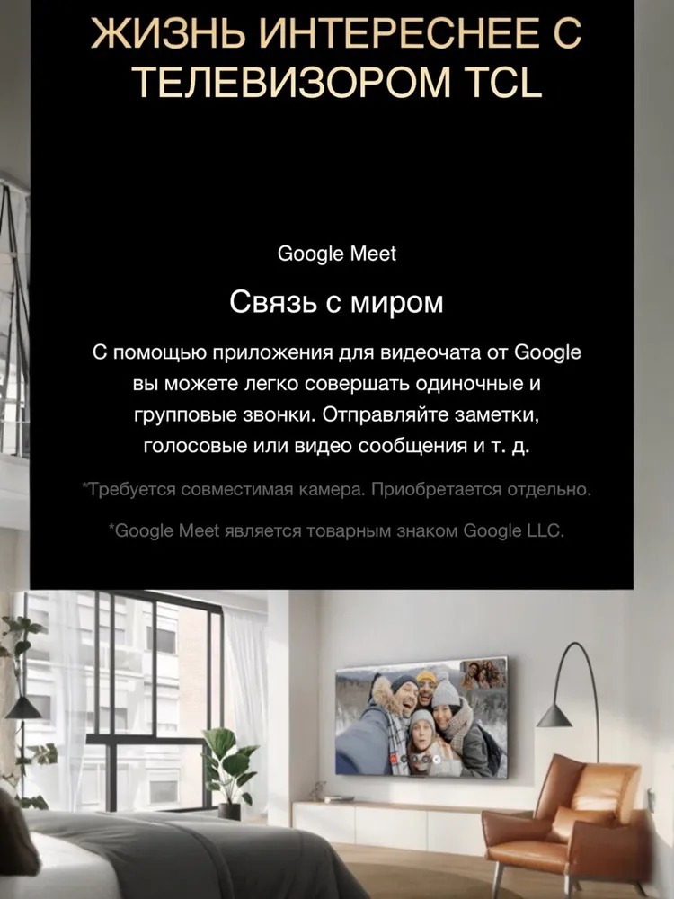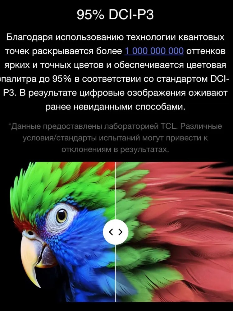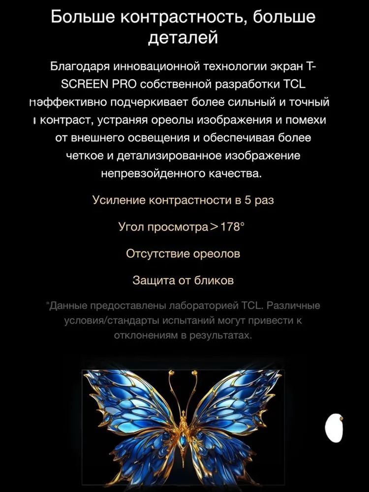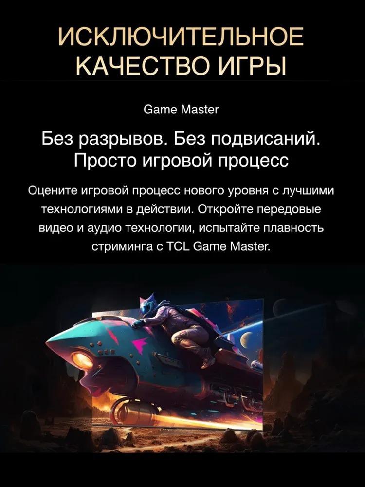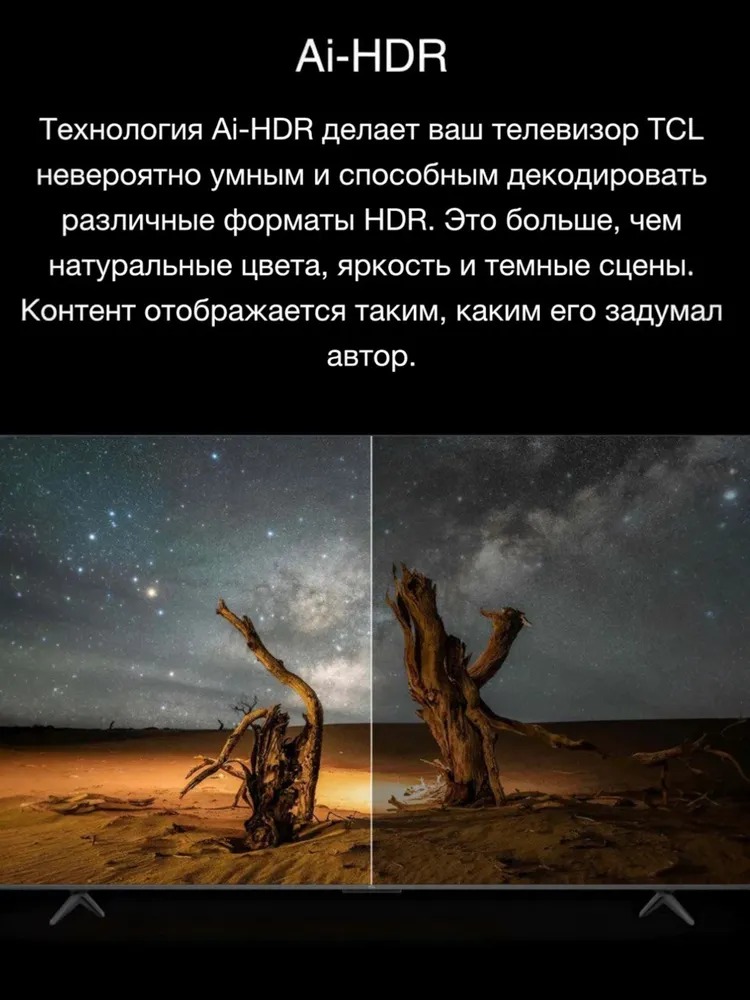 Диагональ43 " Разрешение экрана3840x2160 Соотношение сторон16:9 Наличие BluetoothЕсть Поддержка SMART TVЕсть Управление телевизоромМногофункциональный пульт ДУ Поддержка Wi-FiЕсть HDRHLG, HDR 10+ Частота обновления60 Гц БрендTCL VESA200 х 100 мм